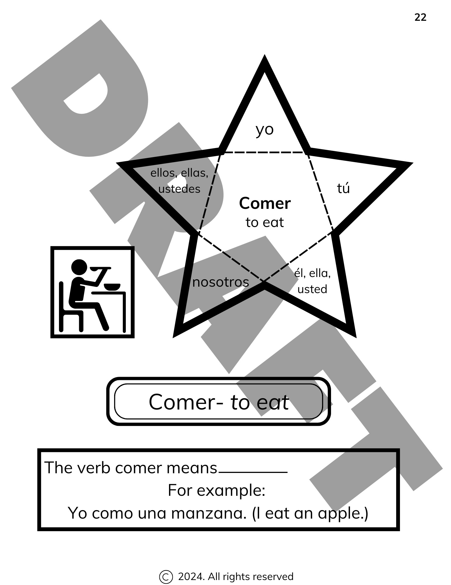 Our Spanish I learning materials are designed to get your students speaking, reading and writing Spanish right away. With easy to understand, interactive, hands-on learning sheets your child will learn Spanish pronouns- key to speaking and understanding the Spanish language, the rules of verb conjugation- how a verb changes depending on the pronoun, and Spanish vocabulary words.