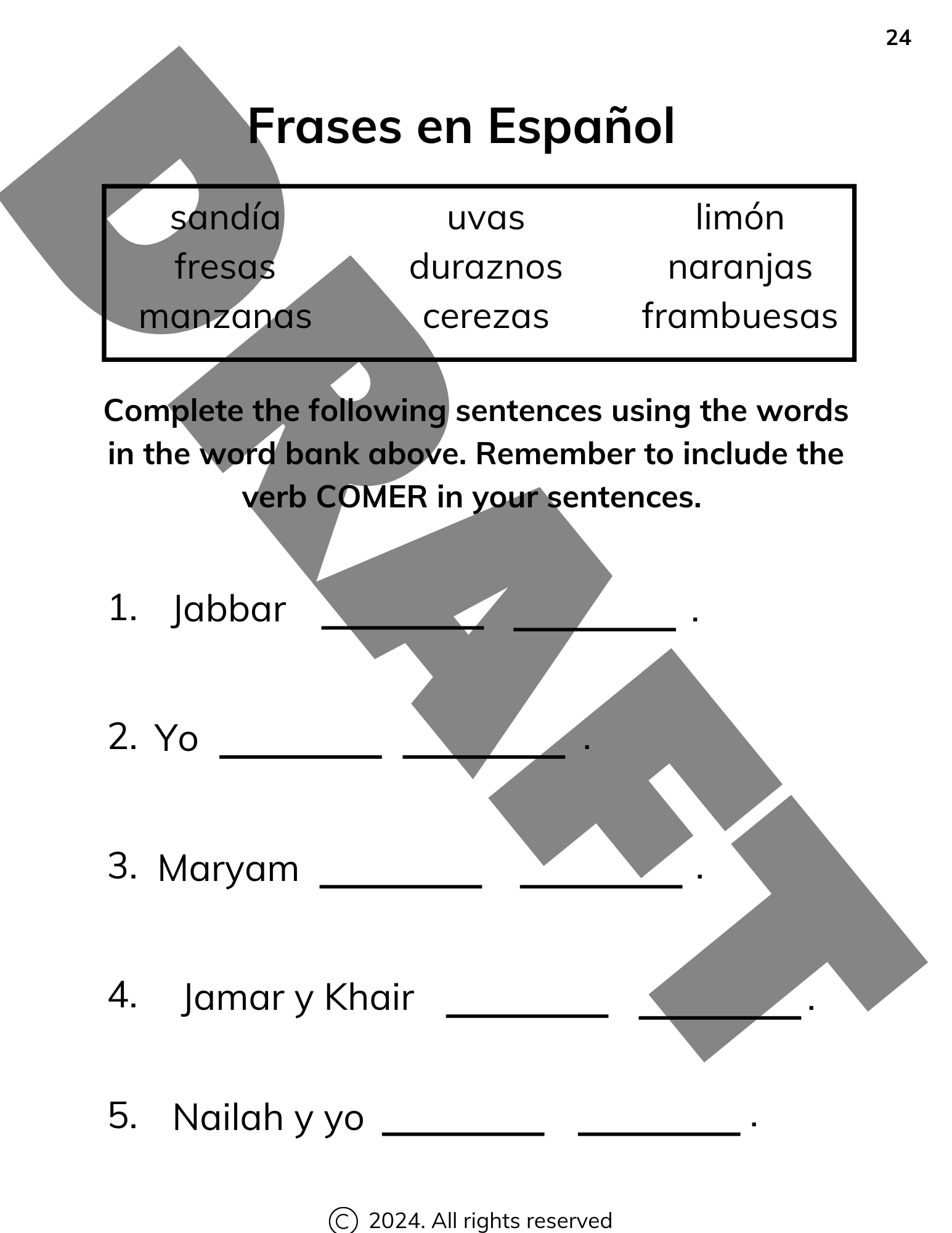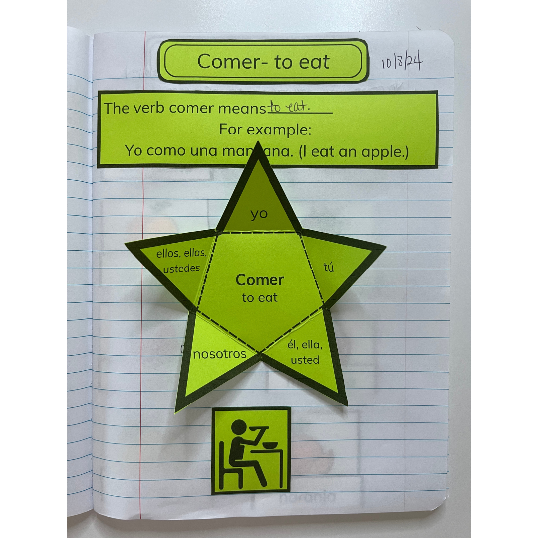 The complete set of Spanish materials contains over 20 verbs and over 100 vocabulary words, including activities for sentence building and fun like vocabulary BINGO.